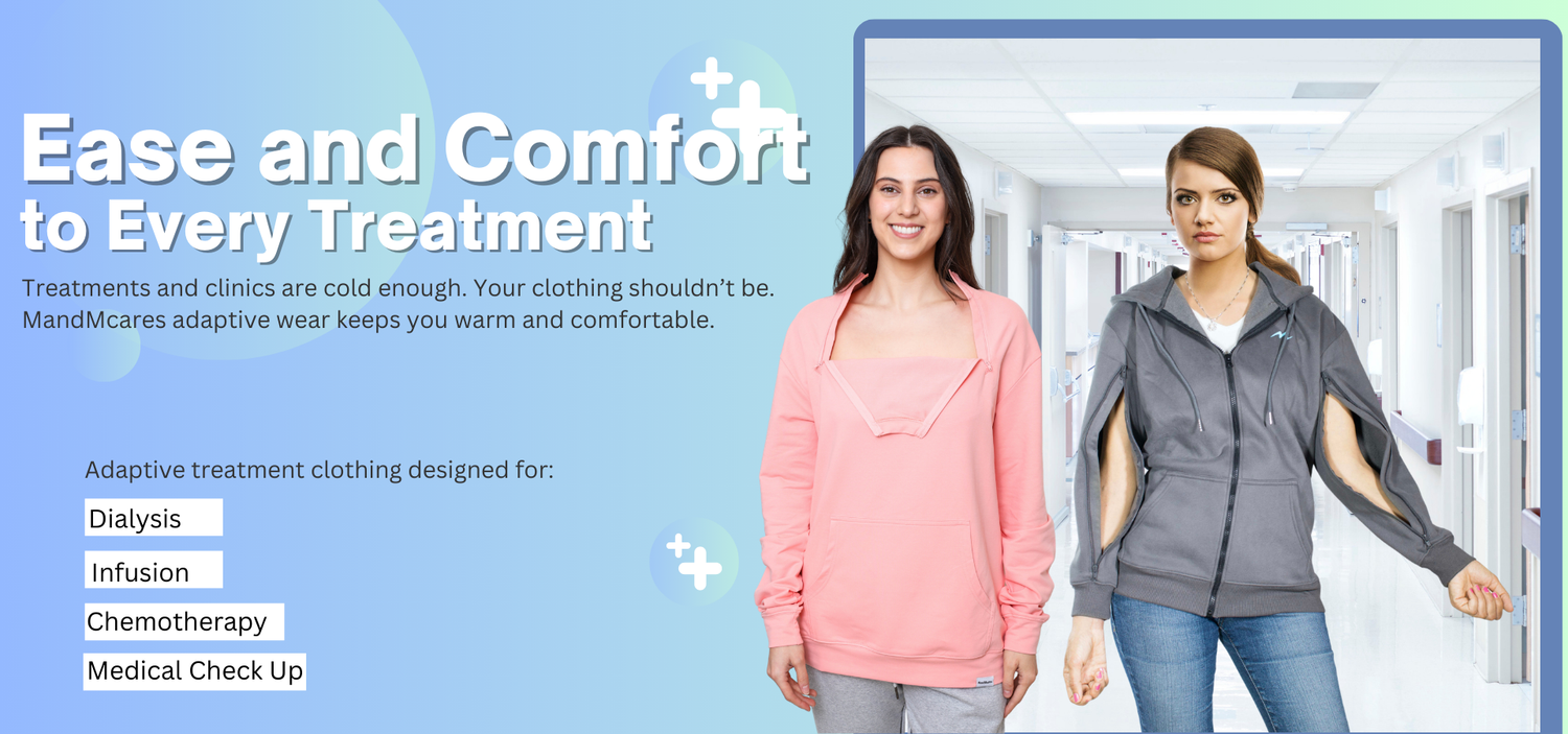 Bought this for a friend of mine in dialysis. She wrote it the first time last week to treatment and loved it! She raved about how warm and comfortable it was during treatment, and how easily her nurse could access her chest port. Everyone at the clinic that day asked about it! This is such an amazing sweatshirt, kudos to whoever thought of this! Treatment days are hard, and I'm so happy this sweatshirt has given my friend a little extra comfort! Highly recommend this company