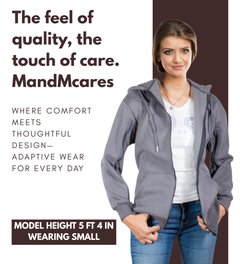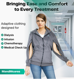 Stay warm, comfortable, and treatment-ready with the MandMcares adaptive hoodie. Thoughtfully designed with smooth bilateral arm zippers, it provides easy access for hemodialysis, chemotherapy, and infusion treatments—without ever sacrificing warmth or dignity.