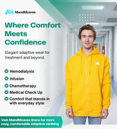 Perfect for anyone who feels cold during treatments, these adaptive hoodies combine medical functionality, warmth, and everyday comfort, making them an essential piece for treatment days and beyond.