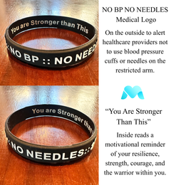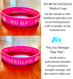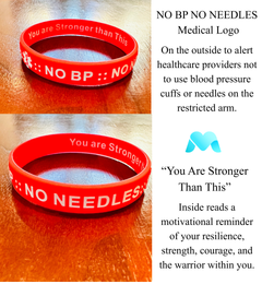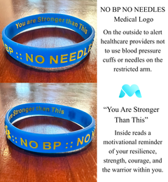 Protect what matters most with MandMcares medical alert wristbands. Made from high-quality silicone, our bands feature bold NO BP • NO NEEDLES embossing to help preserve the AV fistula or graft essential for dialysis treatment. They also provide an important reminder for individuals with lymphedema, ensuring the affected arm is handled with care. Even when family isn’t present, your wristband speaks for you—clearly and confidently. Stylish, durable, and empowering.