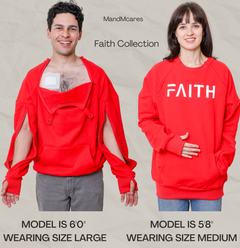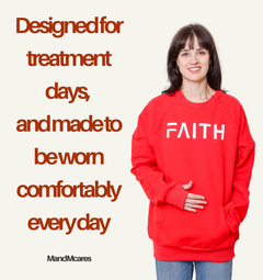 The Chest Port and Arm Access sweater offers easy access to your chest or central lines, while allowing your arms to be open for blood pressure checks. Made from quality cotton, it's warm and comfortable for treatments. Whether you have a chest catheter or fistula, this dialysis and chemo clothing is perfect. The thumbhole keeps your hands warm and a snap button on the upper chest provides added privacy for access. This sweater also has a convenient kangaroo pocket for essentials.