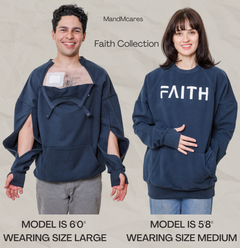 The MandMcares Chest Port and Arm Access Sweater is designed to make dialysis, infusion, and chemotherapy treatments easier and more comfortable. This adaptive medical sweater provides easy access to chest ports, central lines, and arm fistulas, while keeping arms free for accurate blood pressure checks. Made from heavy, soft cotton, it delivers warmth and comfort during long treatment sessions in cold clinic environments.