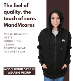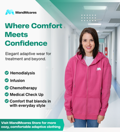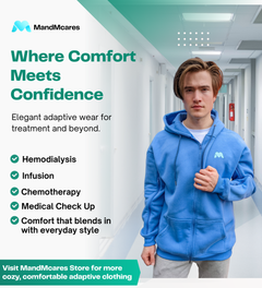 Stay warm and fashionable with our Arm Access Oversized Hoodies! They come with bilateral arm zipper openings for easy access during dialysis, infusion or chemotherapy treatments, making them perfect for patients undergoing these procedures. No more struggling with clothing.These jackets are essential for anyone who feels cold during treatments. Use one arm opening to access the fistula or central line, and the other to monitor blood pressure accurately.